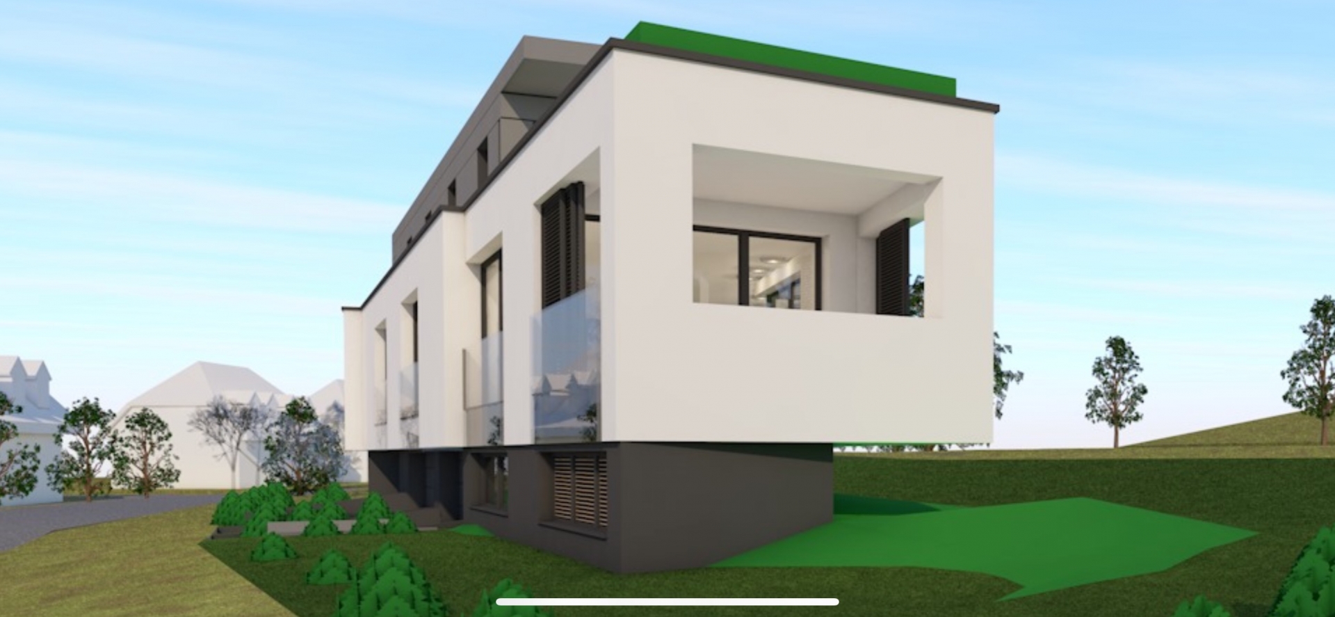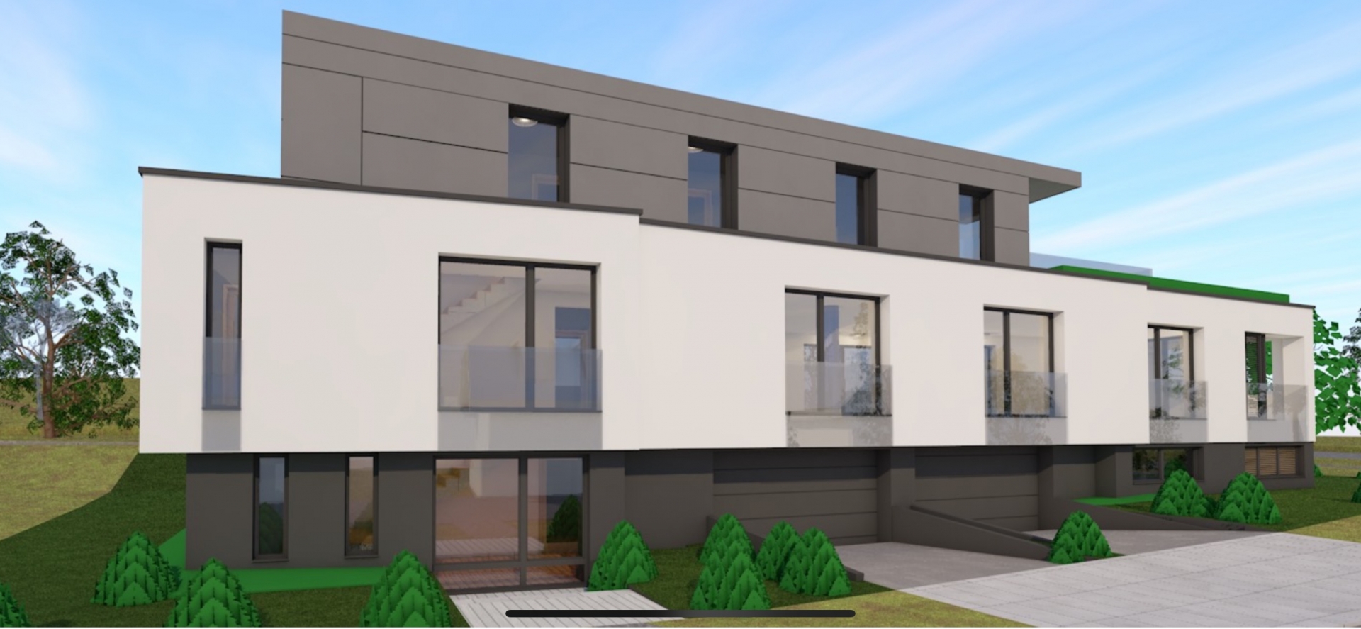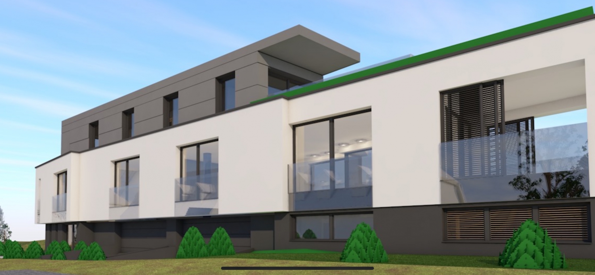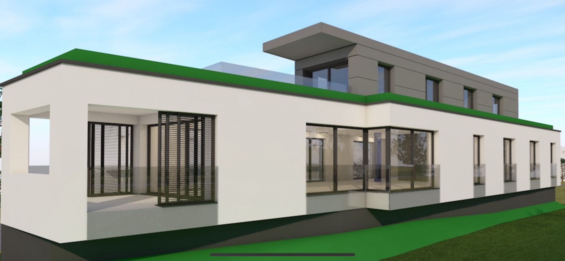Modern, új építésű kialakítás, rugalmas belső térszervezési lehetőségek.