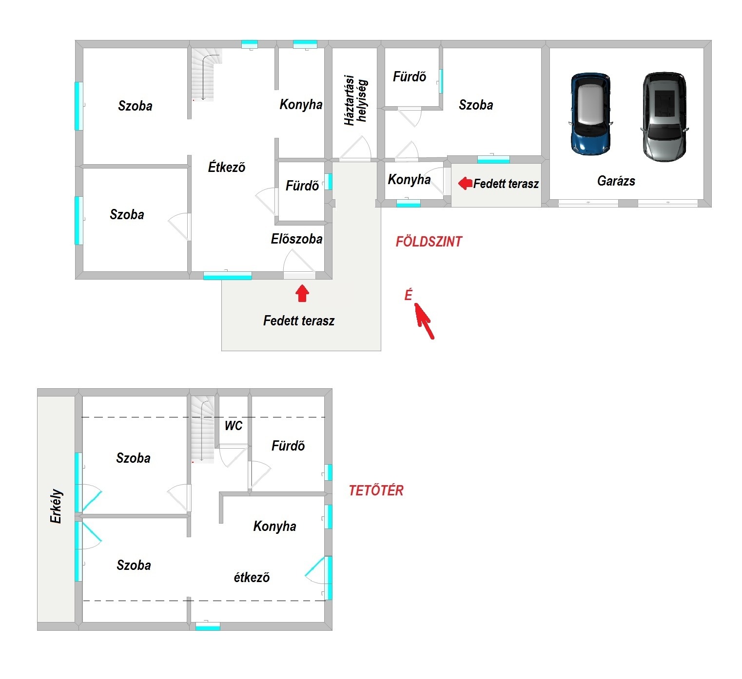 • egy 115 m²-es, kétszintes, kétgenerációs családi ház